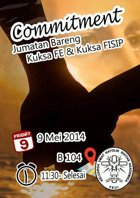 KUKSA FE UI & KUKSA FISIP UI by admin · May 8, 2014 Commitment jumatan bareng 9 Mei 2014 11.30 – selesai Share