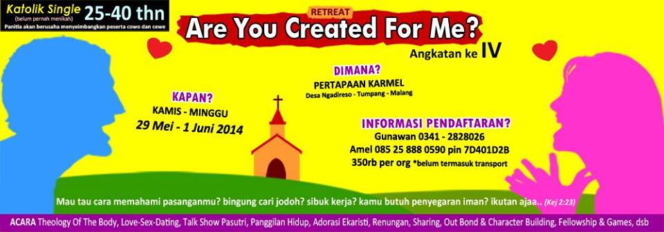 “Retret Single Katolik “Are U Created for Me ?”