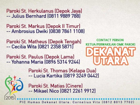 Berikut ini juga ada daftar lengkap dari contact person tiap paroki.
