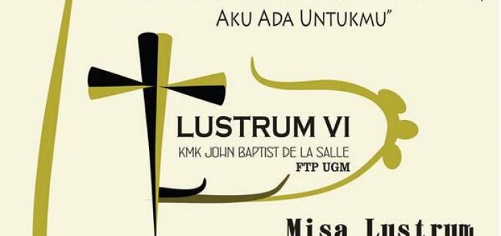 Lustrum VI KMK Jhon De La Salle FTP UGM “Bila Kau Butuh Bahu Tempat Kau Menangis, Bila Kau Butuh Hati Untuk Memahami, Aku Ada Untukmu” Misa Lustrum dan acara seru lainnya Minggu, 11 Mei...