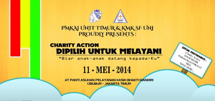 PMKAJ Unit Timur & KMK SF UNJ Proudly Presents Charity Action DIPILIH UNTUK MELAYANI “biar anak-anak datang kepada-Ku” 11 Mei 2014 at panti asuhan pelayanan kasih bhakti mandiri cibubur – jakarta timur